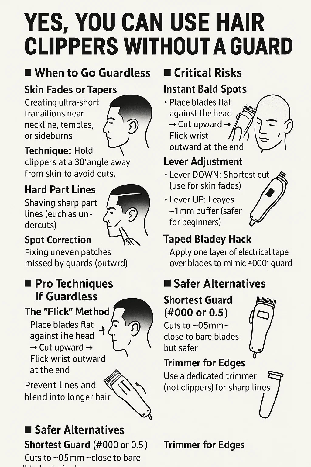 Sì, puoi usare tagliacapelli senza guardia, ma richiede cautela e tecniche specifiche. Ecco cosa devi sapere: