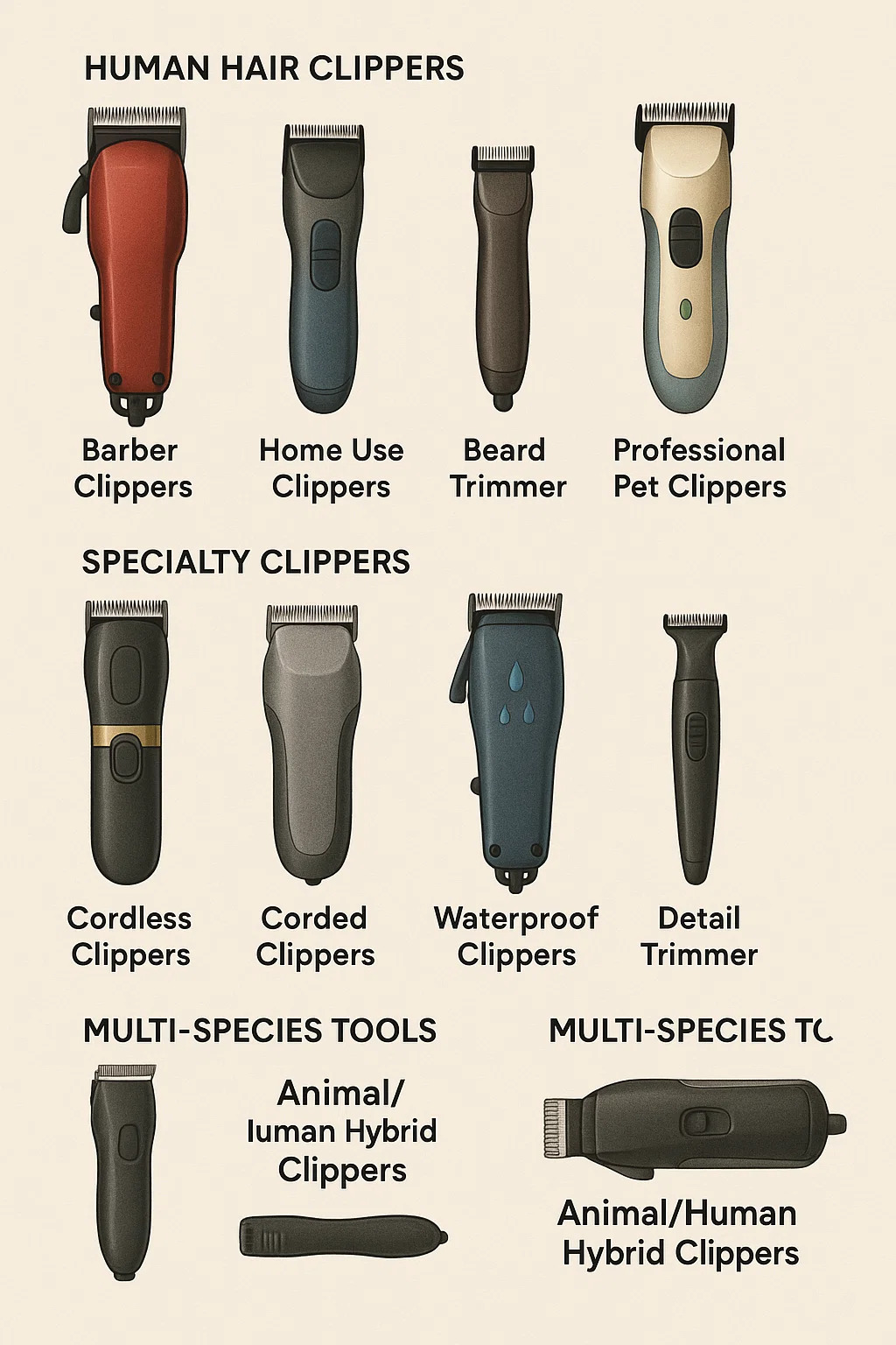 Ecco i tipi principali di Clipper per capelli , classificato per design e scopo: